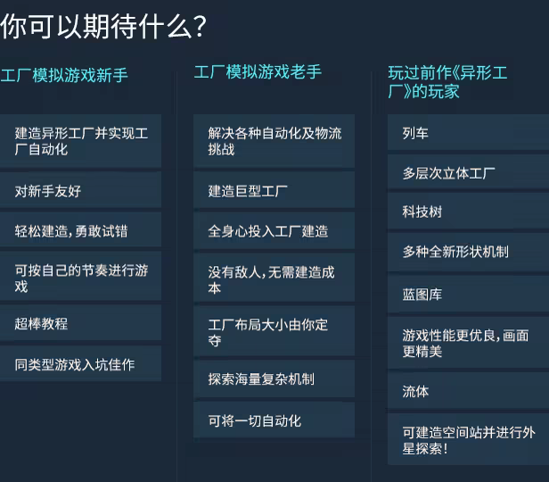 扎进工厂建造的世界中!在这里惟一的目标就是——建造巨型工厂!《异形工厂2》是一款易于上手但极具挑战的工厂建造游戏。游戏中,你需要实现各类几何形状的自动化处理,建造大型工厂并优化生产线,完成难度不断升级的物流和自动化任务。