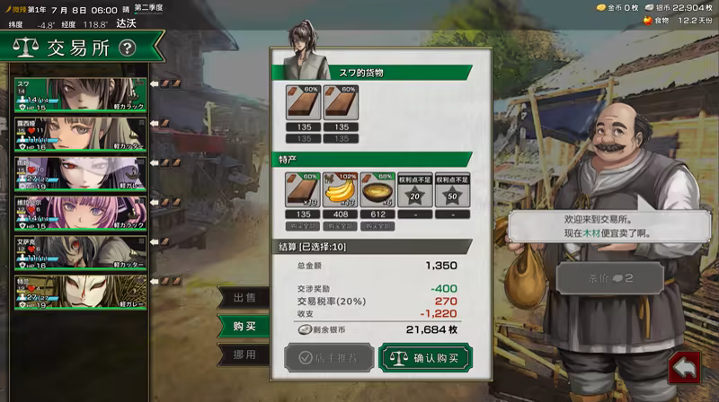 低买高卖,靠贩卖特产赚取银币!越是该地缺乏、需求高的商品,越能卖出高价,成为真正的贸易大亨吧!