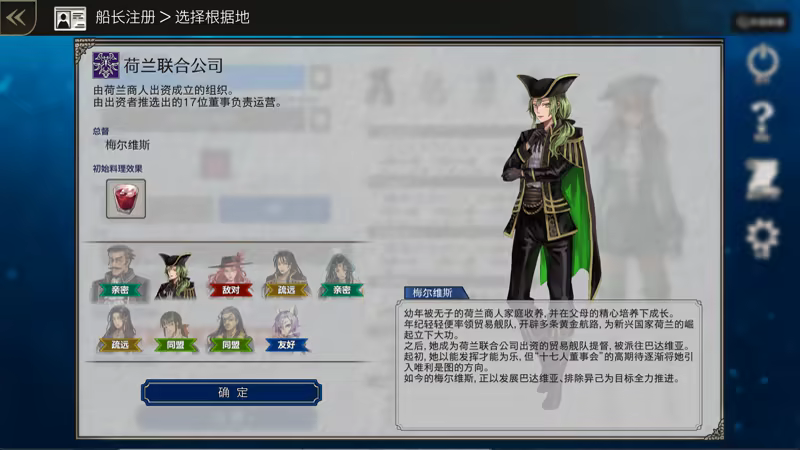 游戏开始前,先创建你的专属船长!可以自定义名字、势力名、职业、外观以及配色风格。