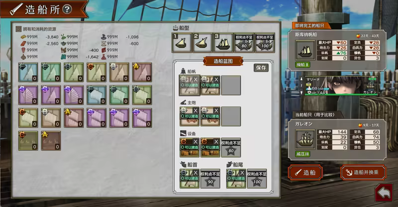 想战胜劲敌?就要有一艘够强的船!造船会消耗大量资源,记得通过探险、转化交易品等方式积攒素材,打造你的最强战舰。