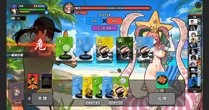 依照街机格斗的出招方式,通过卡牌将方向与拳脚相组合;